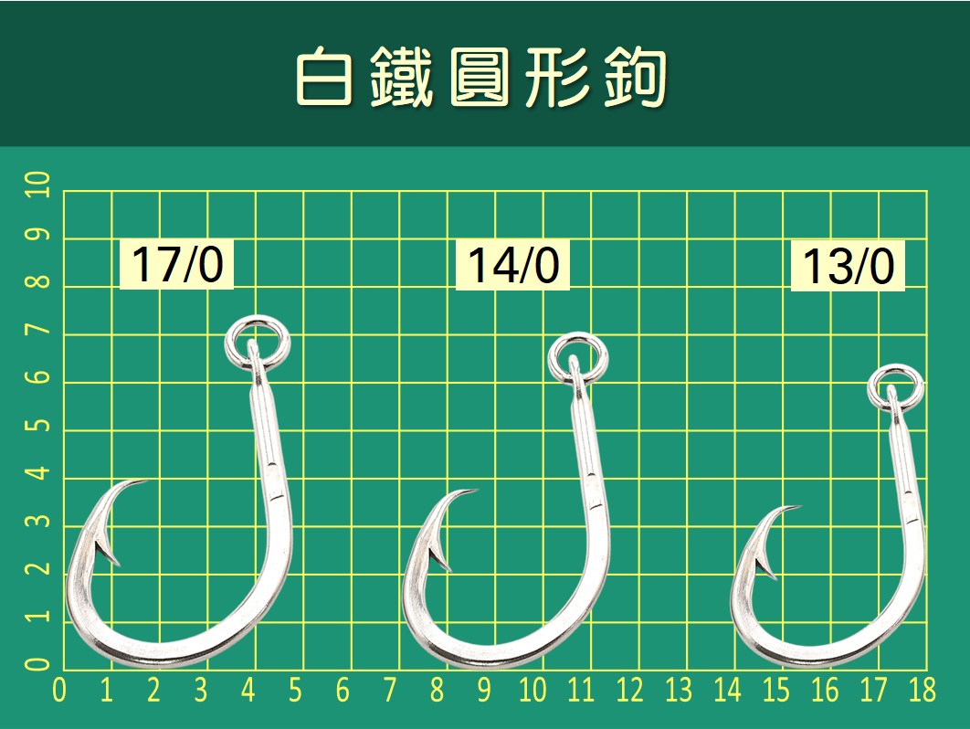 白鐵圓型鉤17/0,14/0,13/0