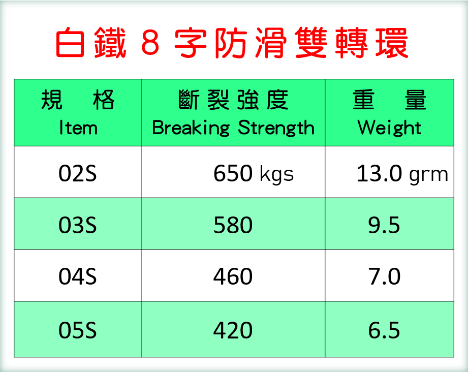 F-08 白鐵8字防滑雙轉環 Stainless course 8-type swivel